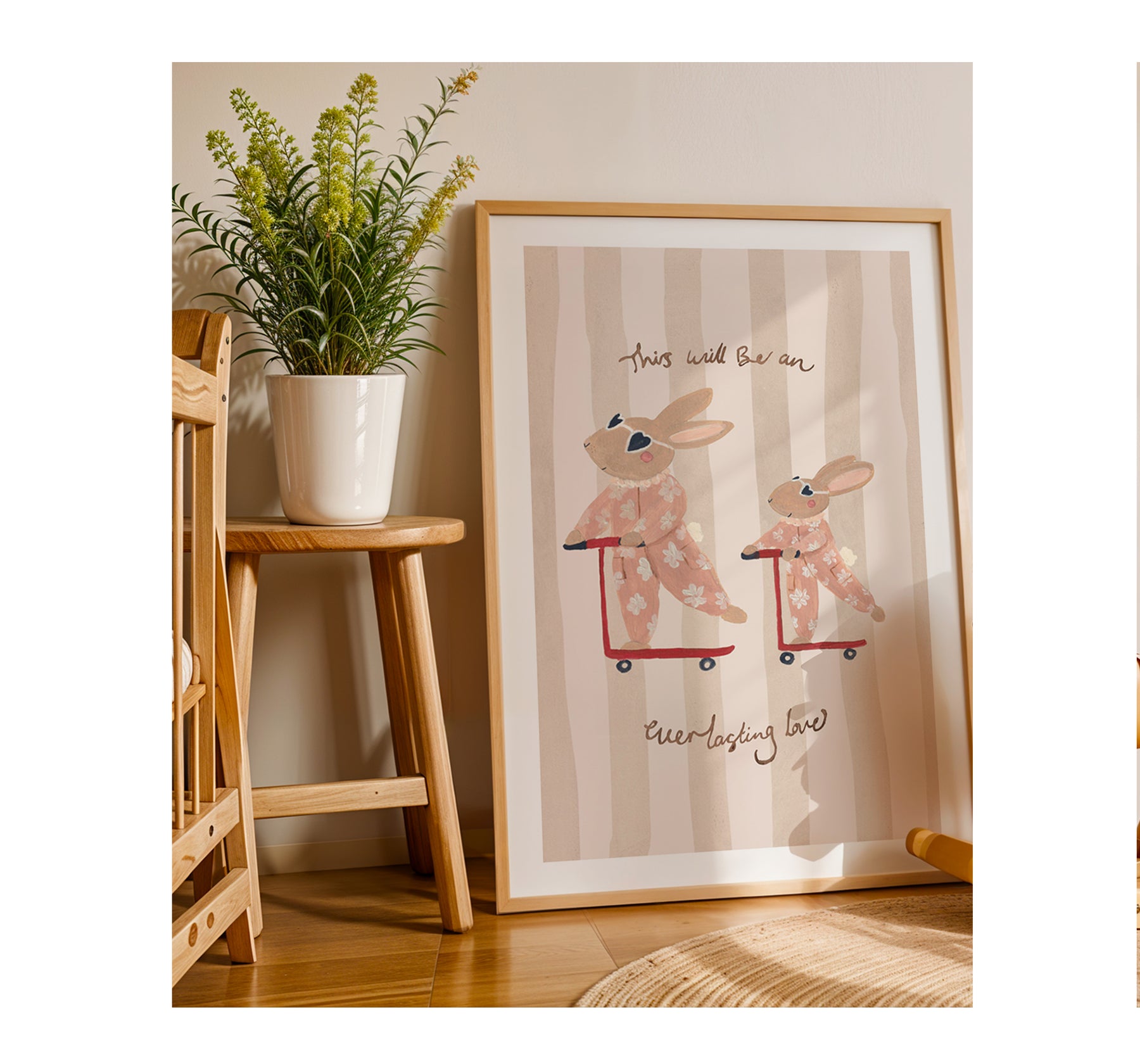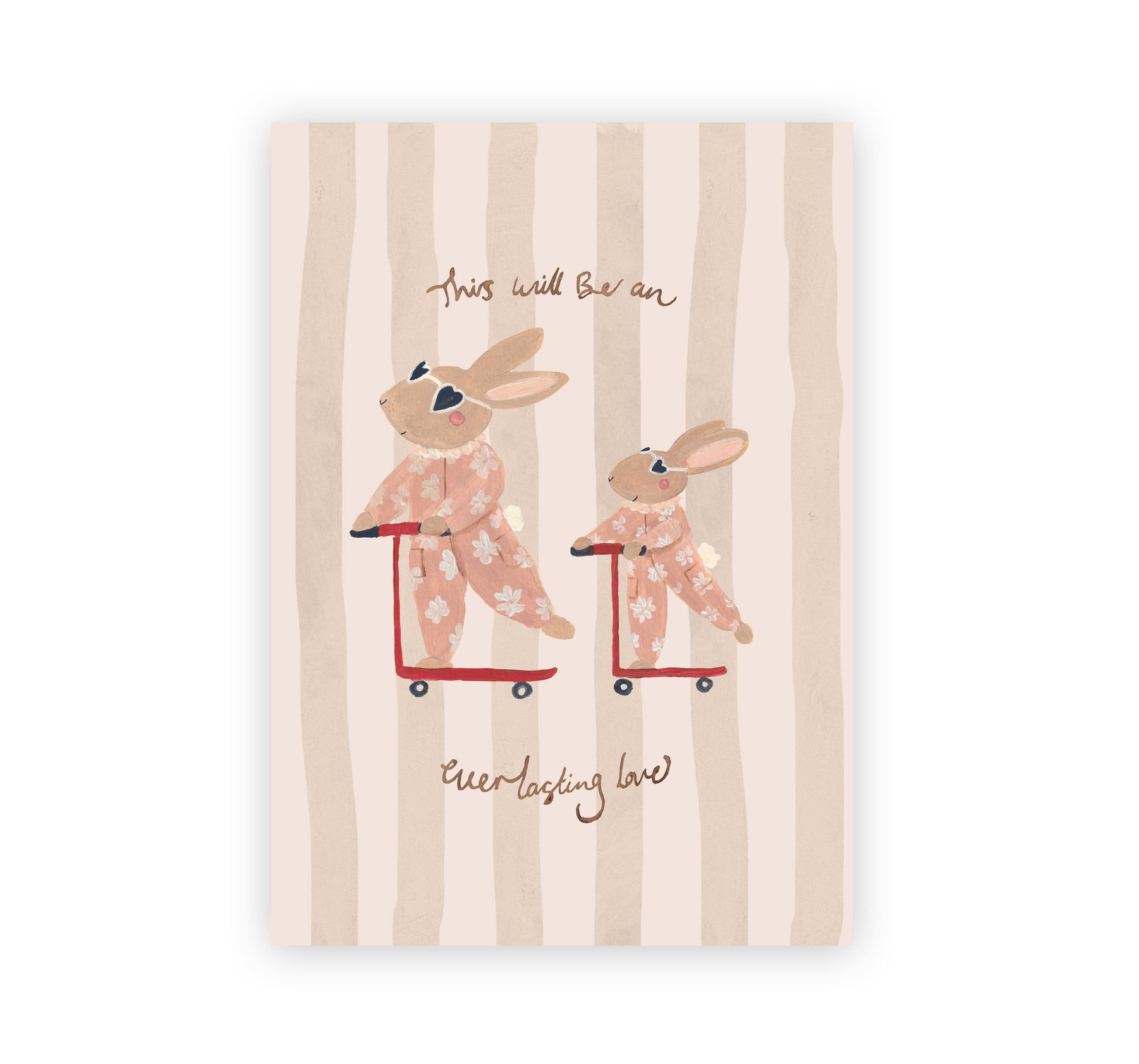 Hand painted rabbit pair riding on their scooters, part of our Sibling Love Series.